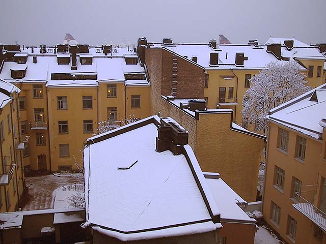 Helsinki: Kattonäkymä Katajanokan Luotsikadulta kohti Kauppiaankatua.
