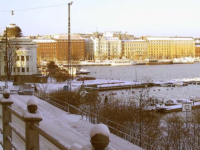 Helsinki: Laivastokatu Katajanokalla ja Pohjoisranta auringonpaisteessa.