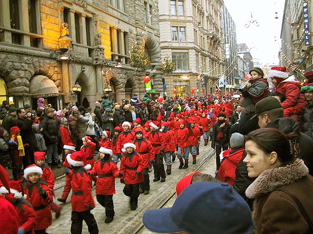 Helsinki: Tonttuja ja yleisöä joulukadun avajaisissa Aleksilla.