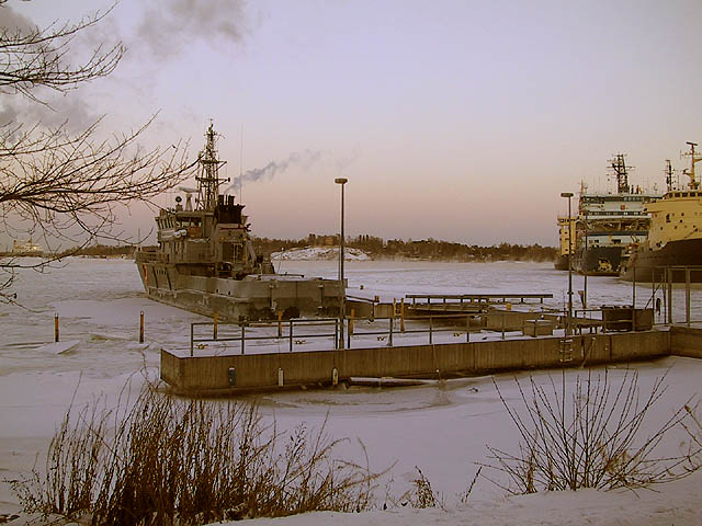 Helsinki: Näkymä Katajanokan pohjoisrannasta. Oikealla jäänmurtajalaituri.