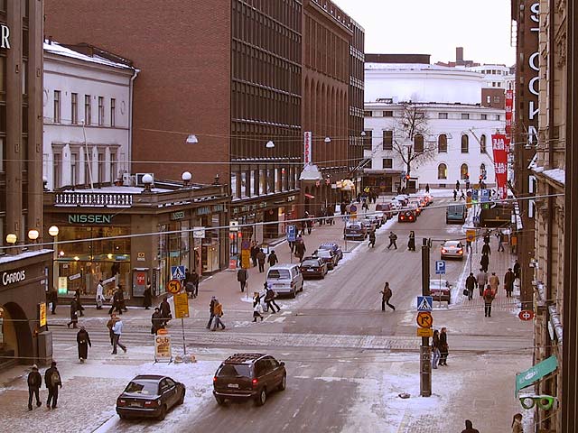 Helsinki: Keskuskadun ja Aleksanterinkadun risteys kaupungin keskustassa.