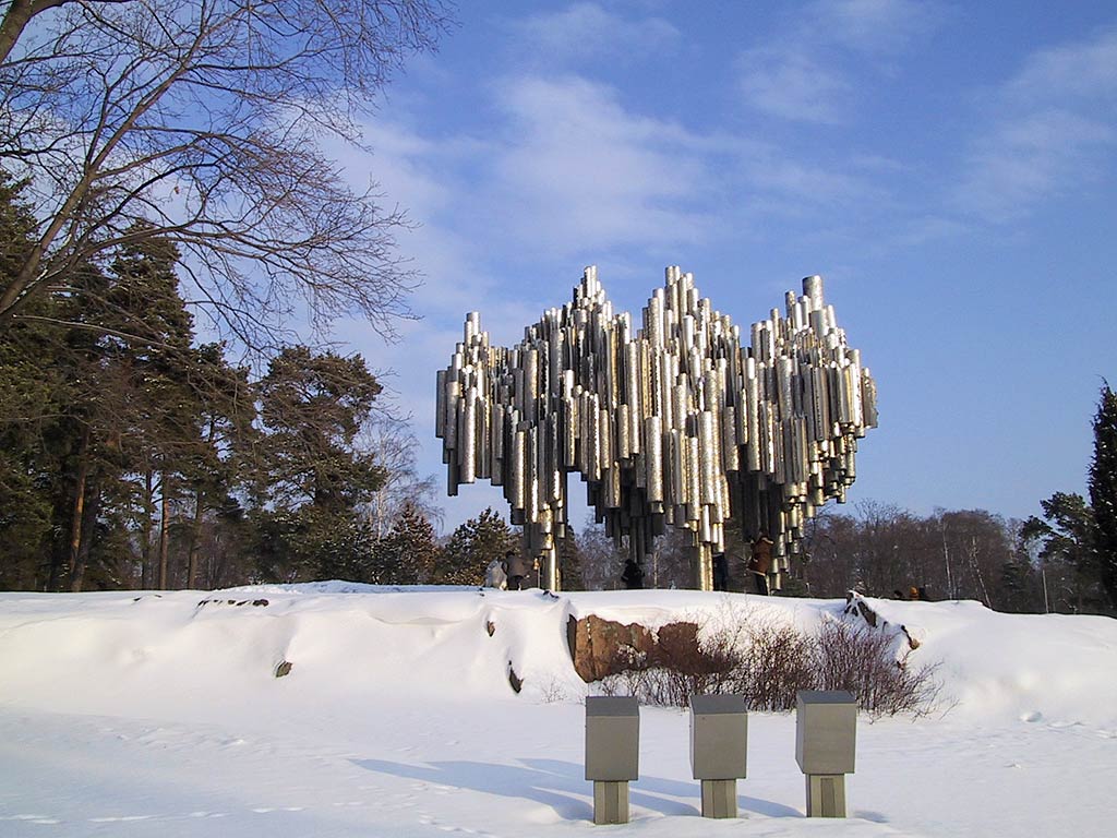 Helsinki: Sibelius-monumentti aurinkoisessa Sibeliuspuistossa Taka-Töölössä.