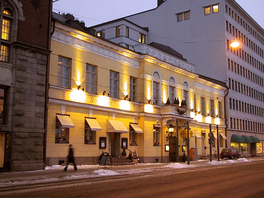 Helsinki: Ravintola G.W. Sundmans Etelärannassa iltavalaistuksessa.