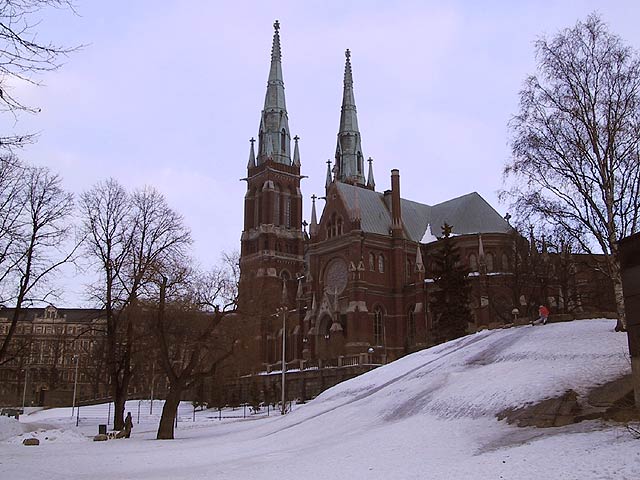 Helsinki: Johanneksen kirkko ja sen puistoa Merimiehenkadulta nähtynä.