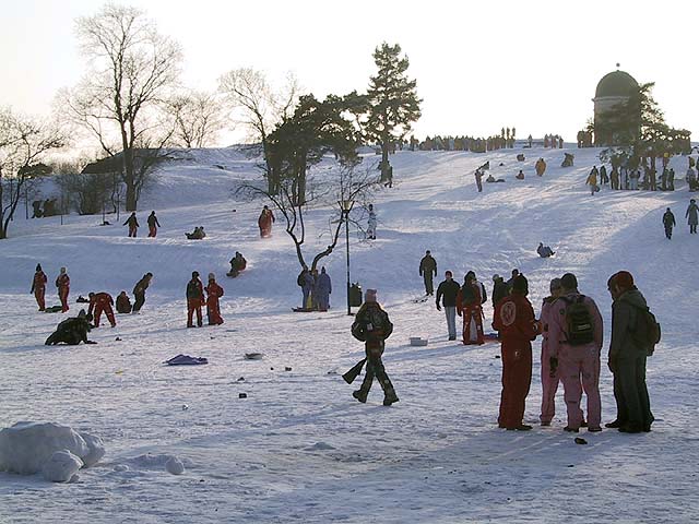 Helsinki: Opiskelijoita laskiaistiistain riennoissa Kaivopuistossa.