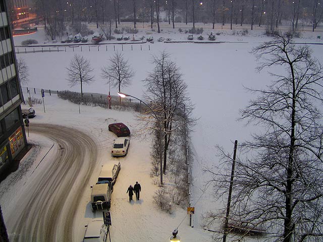 Helsinki: Luminen Pitkänsillanranta, Kaisaniemenlahti ja Kaisaniemenranta.