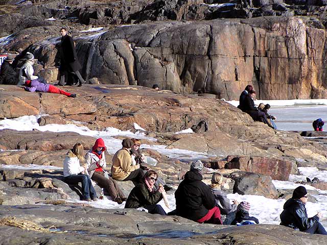 Helsinki: Kevätauringon huumaa Eteläisen Uunisaaren ja Harakan kallioilla.