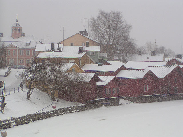 Porvoo: Luminen näkymä Vanhasta Porvoosta Porvoonjoen varrelta.