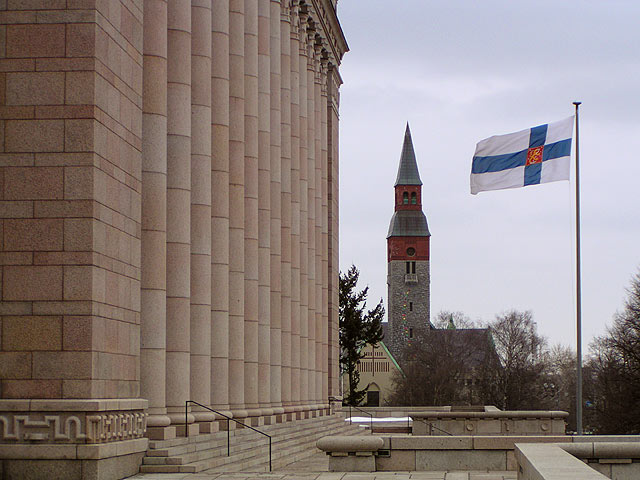 Helsinki: Eduskuntatalo ja Suomen kansallismuseo Mikael Agricolan päivänä.