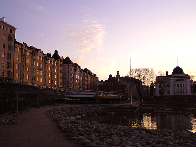 Helsinki: Katajanokan pohjoisrantaa Laivastokadun varrella. Oikealla näkyvä rakennus on Katajanokan Kasino.