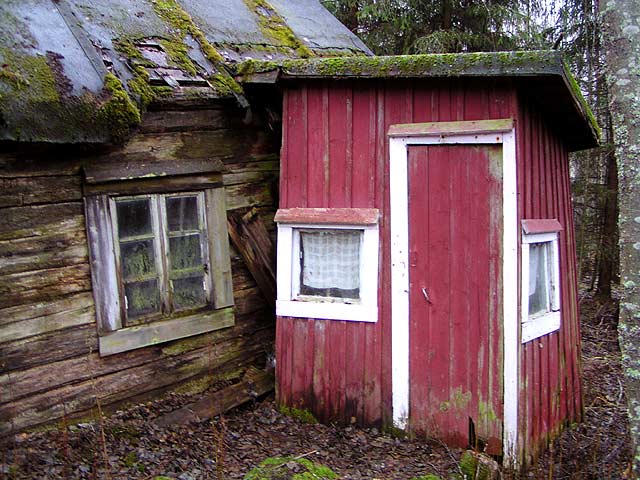 Loppi: Aika on jättänyt jälkensä ulkorakennuksiin metsän siimeksessä.