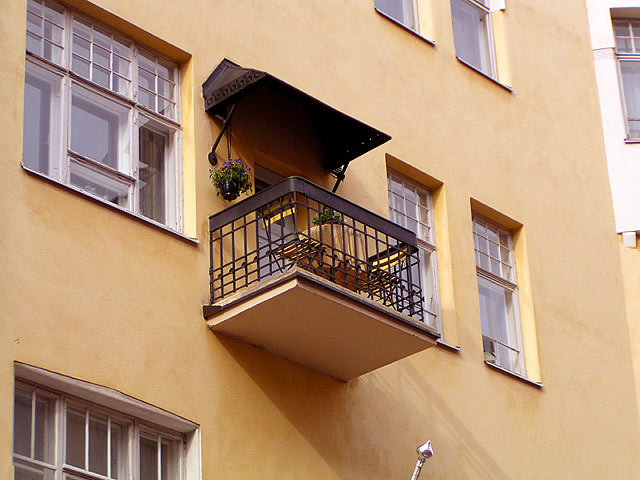 Helsinki: Parveke Luotsikatu 11:n talossa Katajanokalla.