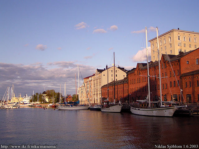Helsinki: Katajanokan pohjoisrantaa ilta-auringon lämpimässä valaistuksessa.