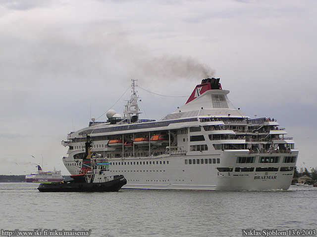 Helsinki: Merelle suuntaava risteilyalus ja avustava hinaaja Eteläsatamassa.