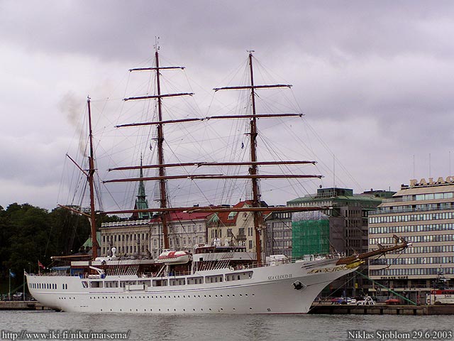 Helsinki: Maltalainen purjelaiva Sea Cloud II vierailulla Eteläsatamassa.