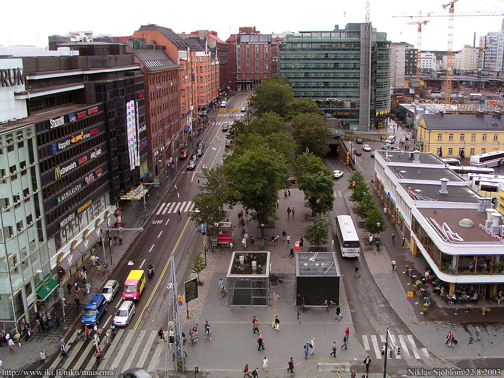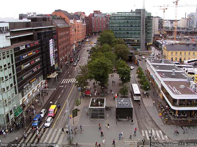 Helsinki: Simonkatu ja Kamppi nähtynä Sokoksen katolta Mannerheimintien yli.