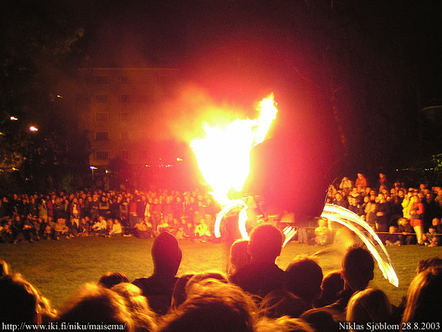 Helsinki: Tulisirkus Native Noise Hesperian puistossa 15. taiteiden yönä.