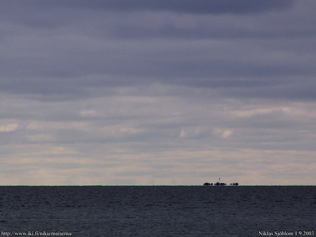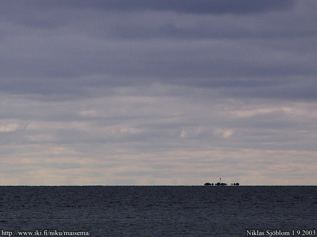 Kotka: Kaukaisen saaren kangastus merellä näkymässä Santalahden luontopolulta.