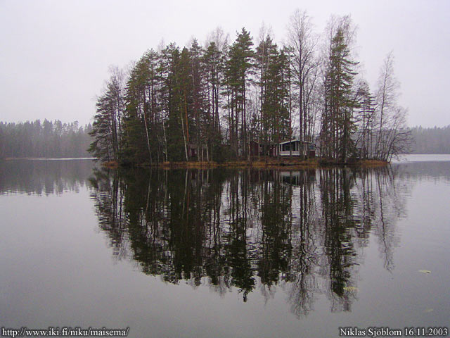 Karkkila: Pieni saari Valkjärvessä Vuotinaiseen johtavan tien varrella.