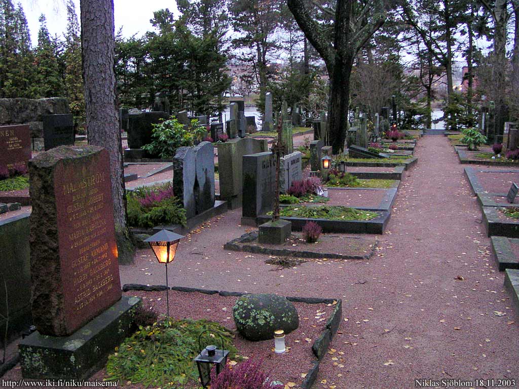 Helsinki: Hietaniemen hautausmaa iltapäivän hämärtyessä. Takana näkyy Lapinlahti.