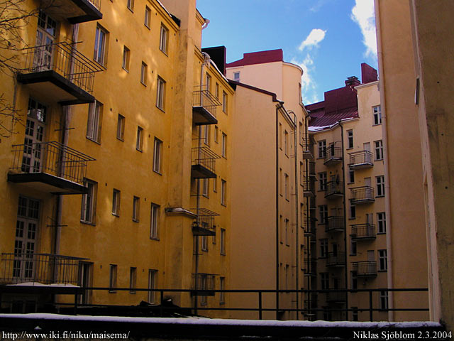 Helsinki: Sisäpihanäkymä Tarkk'ampujankadulta (talot 15-17) Ullanlinnasta.