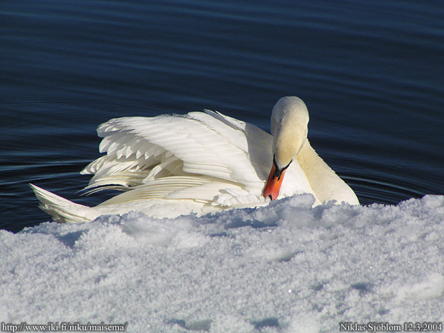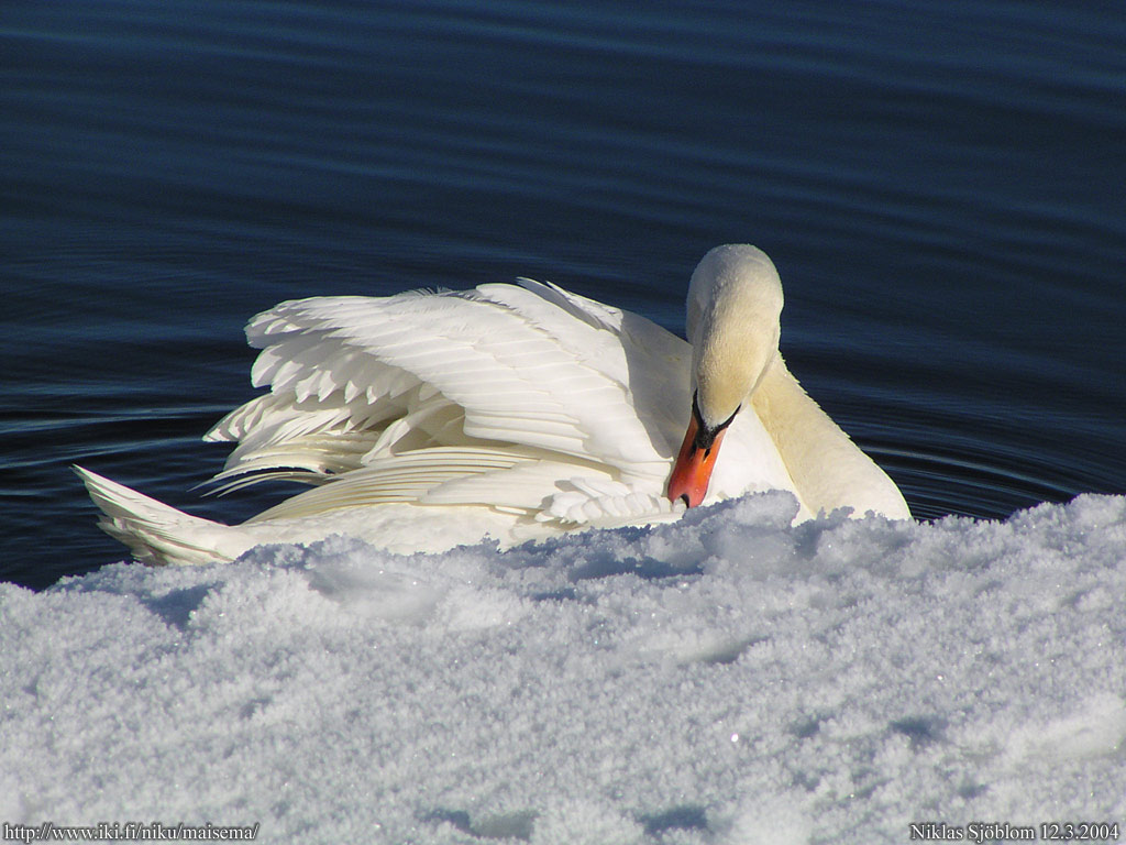 Helsinki: Kyhmyjoutsen Kaivopuiston edustalla sijaitsevan Särkän saaren rannassa.