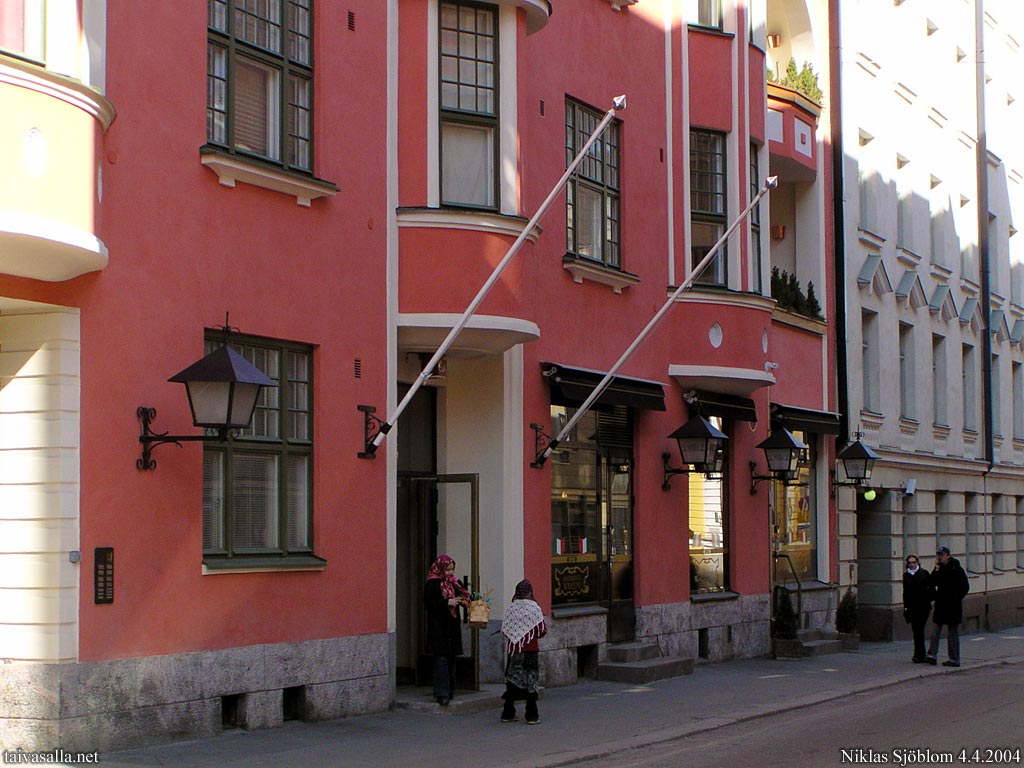 Helsinki: Kirkkokatu 5 Kruununhaassa ja porraskäytävästä poistuvia virpojia.