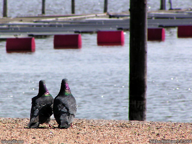 Voi kuinka hienosti ponttoonien väri toistuu pulujen kaulassa!