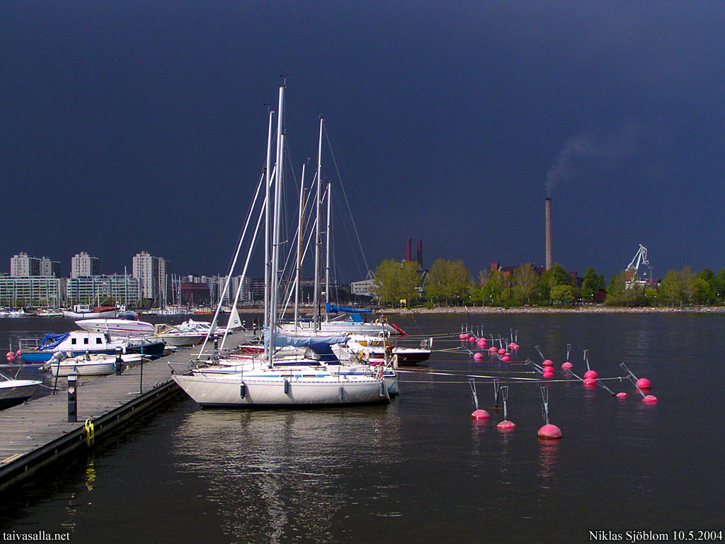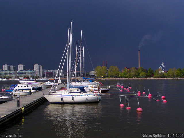 Kumma kun ei ole kommentoitu. Tämä kuten tuo toinenkin samana päivänä otettu kuva ovat uskomattoman puhuttelevia. Uhkaava ukonilma (myrsky?) ja satamassa "lepäävät" valkoiset alukset ovat herkullinen vastakohta-asetelma. Toivoisin vesiväreillä pystyväni joskus johonkin samantasoiseen tunnelmakuvaukseen.