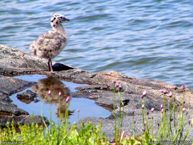 Helsinki: Pienenä suuressa maailmassa. Lokin poikanen katselee merelle Pikku-Mustan rannalla Suomenlinnassa.