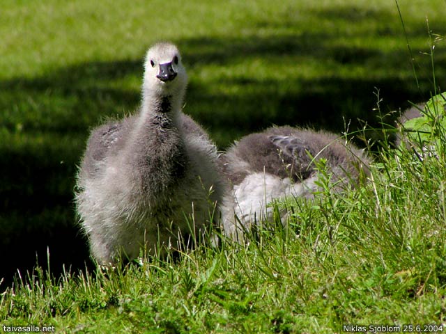 Helsinki: Valkoposkihanhen poikasia Suomenlinnan Pikku-Mustassa Merisotakoulun piha-alueella.