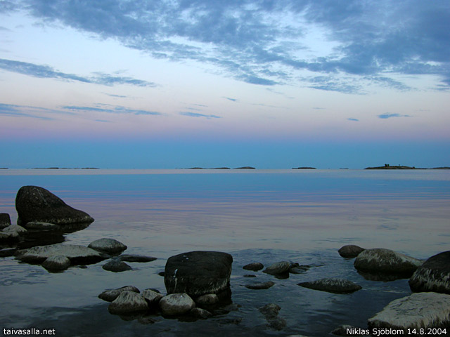 Hanko: Pimeys laskeutuu Hangon saaristoon pian auringonlaskun jälkeen. Kuvattu Högholmenin kärjestä Tvärminnessä, noin 10 km itään Hangon keskustasta.