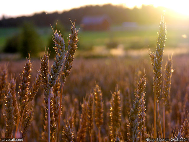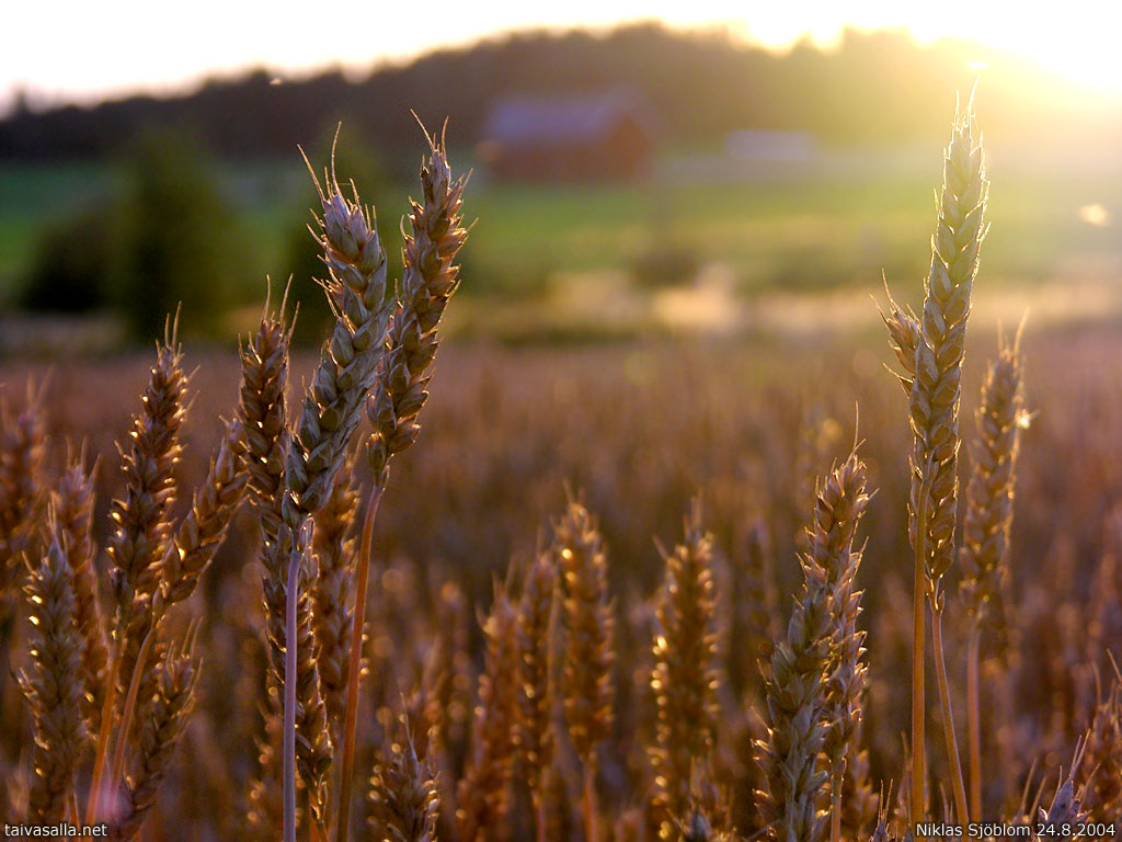 Helsinki: Kesäpäivän viimeiset auringonsäteet Viikin koetilan vehnäpellolla.