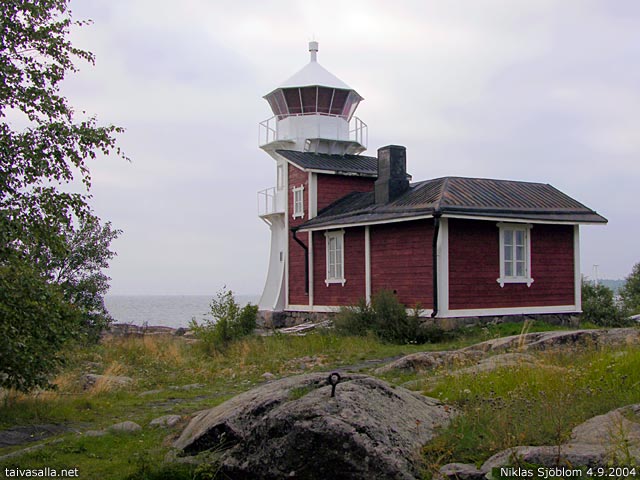 Pori: Kallon majakka Mäntyluodossa. Nykyinen rautainen torni rakennettiin vuonna 1903, mutta puusta tehty torni valmistui jo 1885 turvaamaan Reposaaren satamaliikennettä.