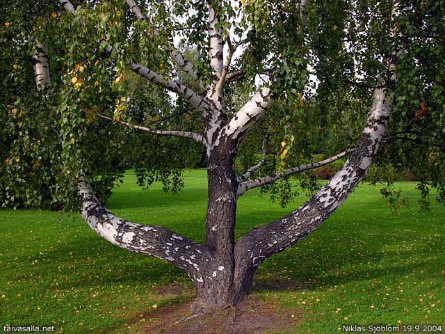 Helsinki: Johannesbergintien vieressä kasvava koivu Meilahdessa.