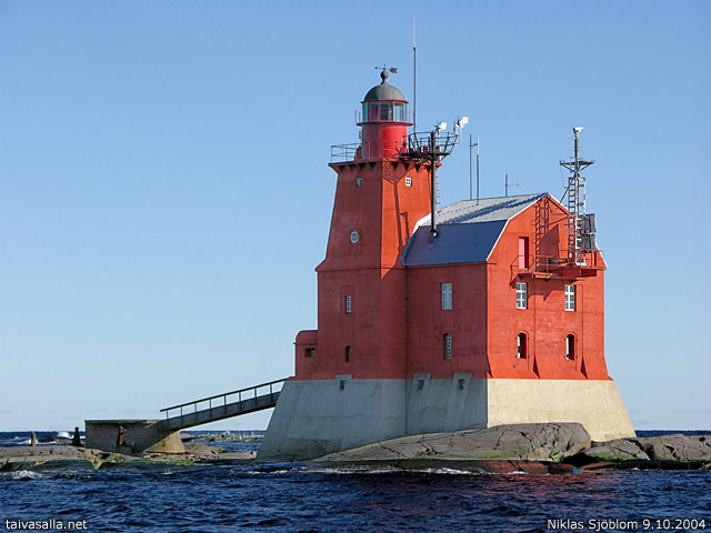 Kirkkonummi: Porkkalan majakka pienellä Kallbådan luodolla. Kallioilla köllöttelee toisinaan harmaahylkeitä, mutta tällä kertaa vain niiden kuonot pilkistivät aika ajoin merestä.