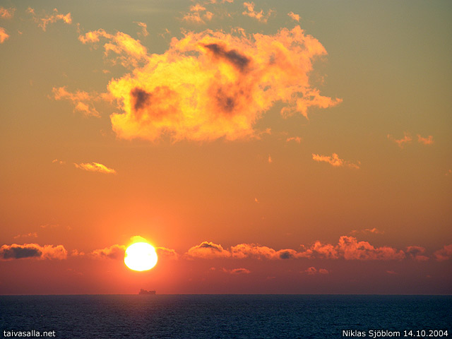 Gulf of Finland: Sunrise above the sea. View from Viking Line's ferry M/S Mariella near Porkkala peninsula, about 50 kilometres southwest from Helsinki.