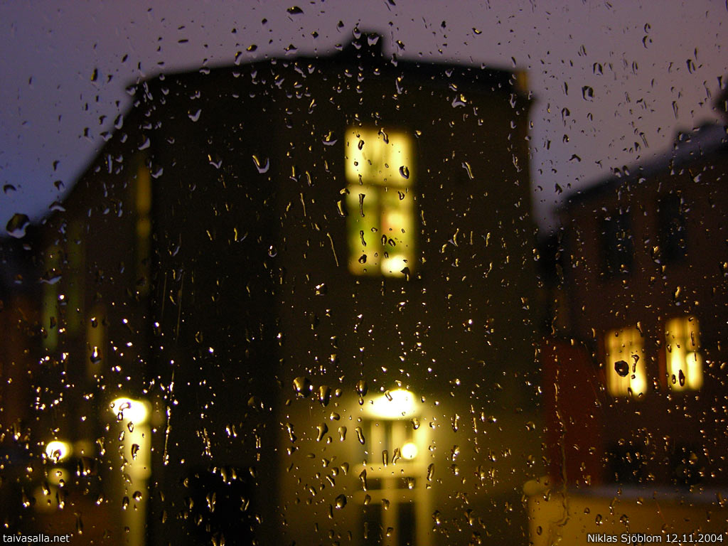 Helsinki: Somewhere between twilight and darkness on a stormy day. Courtyard on Luotsikatu street; Katajanokka district.