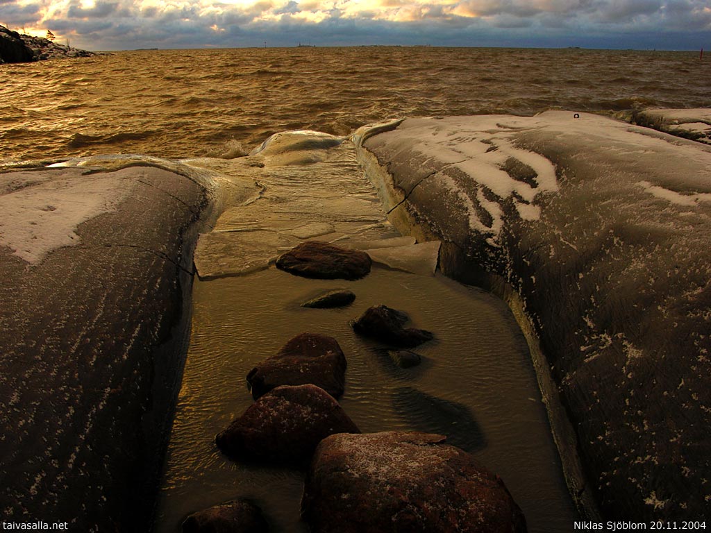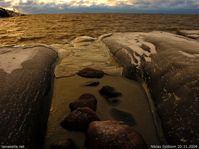 Helsinki: Morning view from the shore of Eteläinen Uunisaari island near Kaivopuisto park - a few hours before heavy snowfall. (See corresponding photo of previous year; Nov 20th, 2003.)