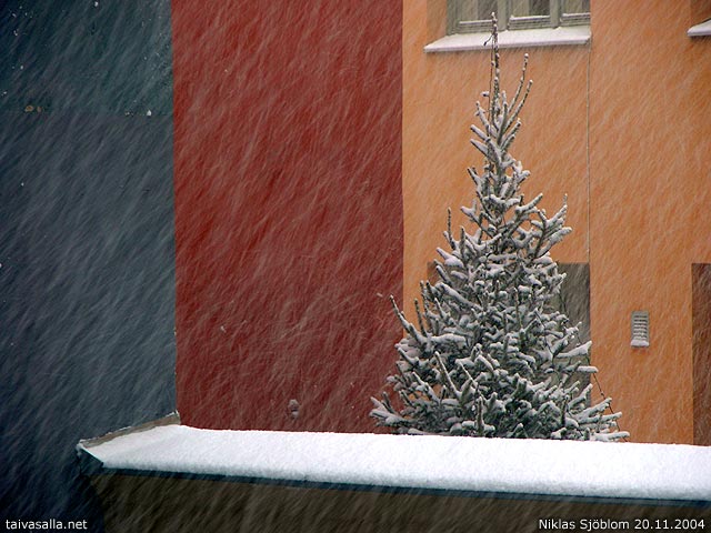 Helsinki: Dense snowfall on a courtyard on Luotsikatu street; Katajanokka district.