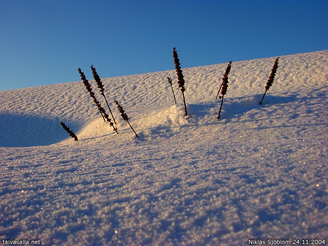 Helsinki: Snow and morning sunshine on Eteläinen Uunisaari island near Kaivopuisto park.