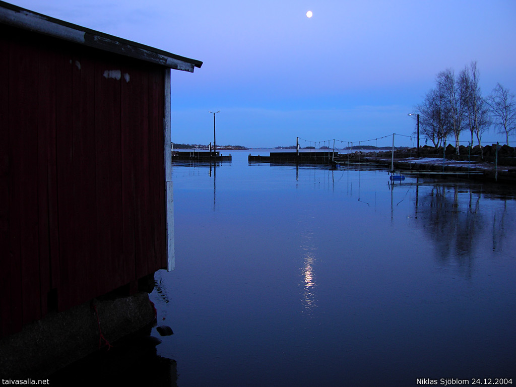 Kotka: Moonlight over Mansikkalahti bay on Christmas Eve; Katariina district.