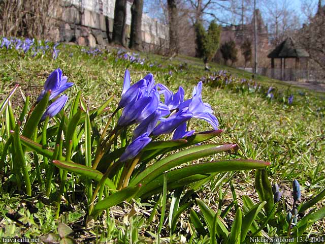 / Helsinki: Flowers on a hillside south of the Uspenski Cathedral; district of Katajanokka.
