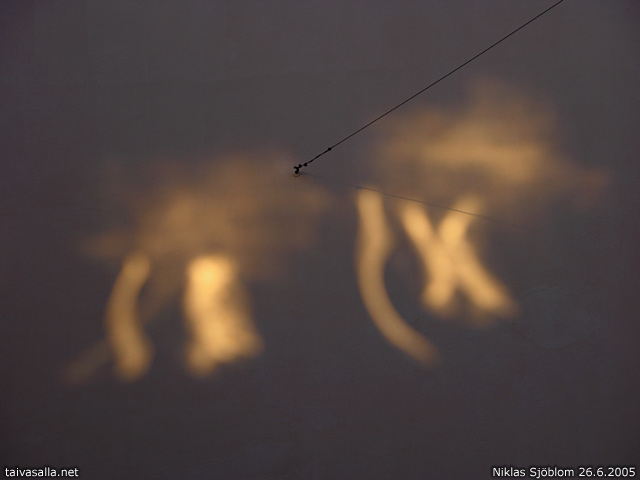 Helsinki: Evening sunshine reflected from the windows of a residential building appearing as figures on the wall of the opposite building. View from Luotsikatu street in Katajanokka district.