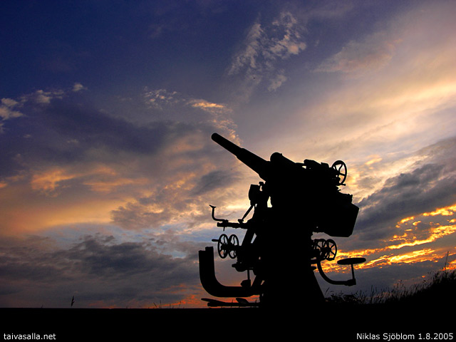 Helsinki: Vanha ilmatorjuntatykki Suomenlinnan Länsi-Mustasaaressa. Suomenlinnan linnoitusmuureilla, rantavalleilla ja museoissa on jäljellä yli sata tykkiä.
