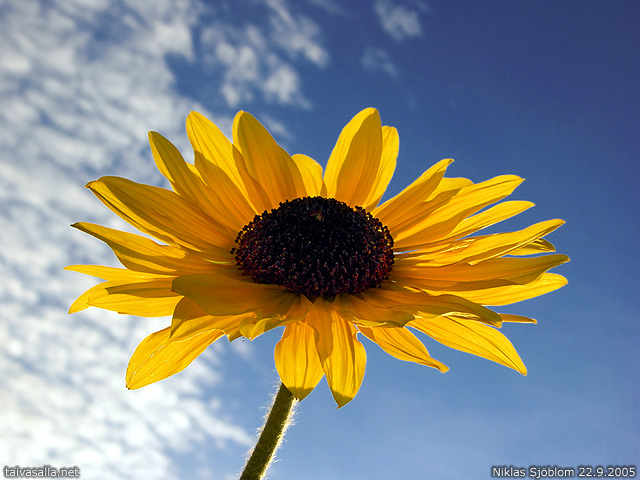 Helsinki: A late sunflower in a garden nearby the Finlandia Hall and Töölönlahti inlet, quite close to the city centre. Summerlike weather still lingers in the city despite the dawn of autumn.