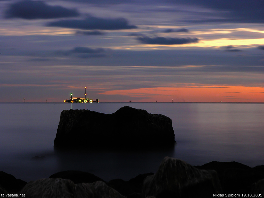 Helsinki: View towards the Gulf of Finland and Harmaja lighthouse island from the southern shore of Länsi-Mustasaari, one of the Suomenlinna sea fortress islands. Exposured for 30 seconds.
