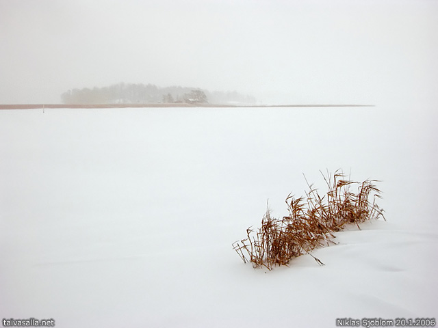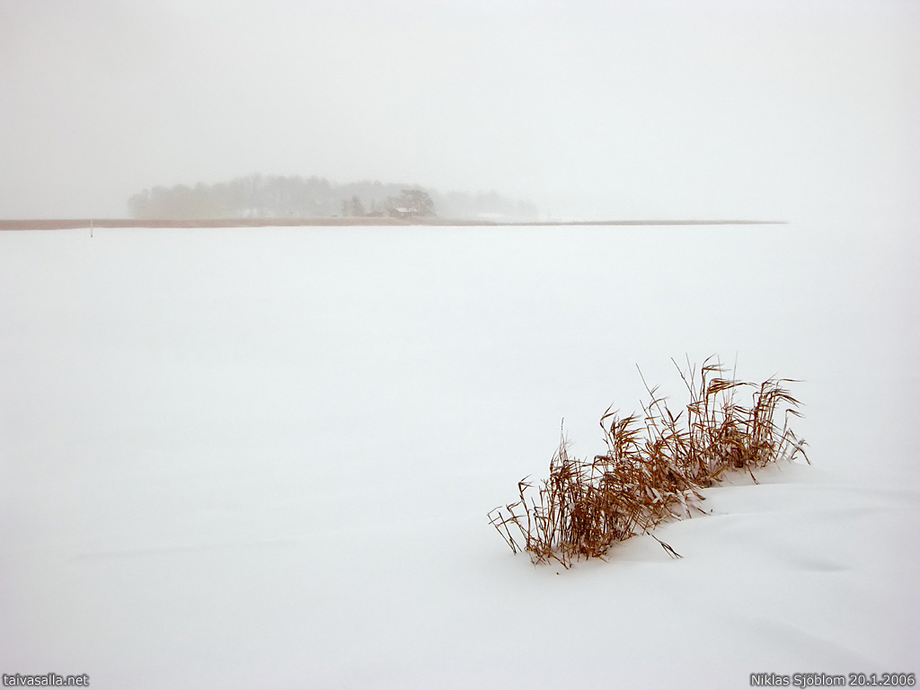 Helsinki: Vanhankaupungin selkä sea area and a few islands seen from the shore between Toukola and Vanhakaupunki districts. Snowfall turned the city into a winter wonderland.