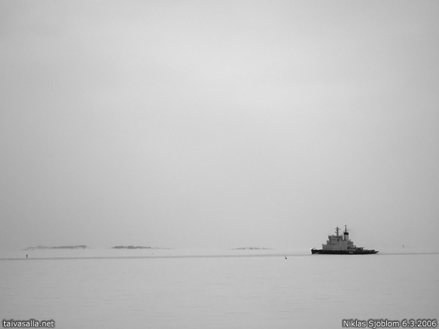 Helsinki: Jäänmurtaja Sisu Lauttasaarenselällä. Kuvattu Harakan saaresta Kaivopuiston edustalta.