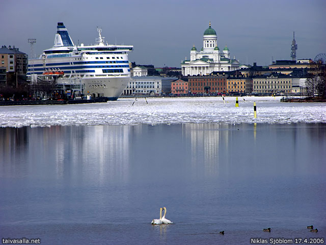 Silja paatti painaa n.16 000 tonnia. Silja laiva ja joutsenet...ei paremmasta väliä